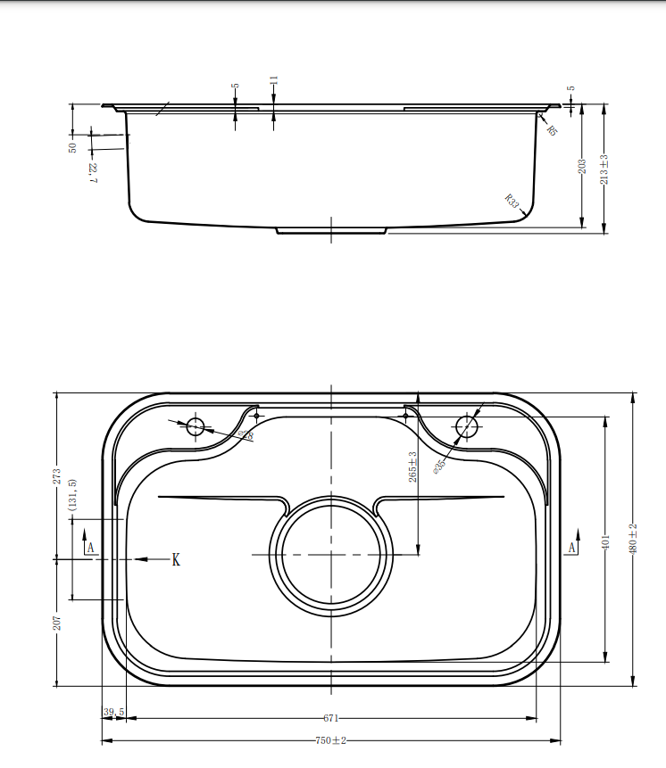 外徑:W750 × D480 × H215 mm 內徑:W723 × D453 mm 厚度:1.0 mm 無溢水孔
