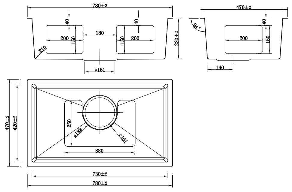 外徑:W780 × D470 × H220mm 內徑:W730 × D420 mm 厚度:1.2 mm