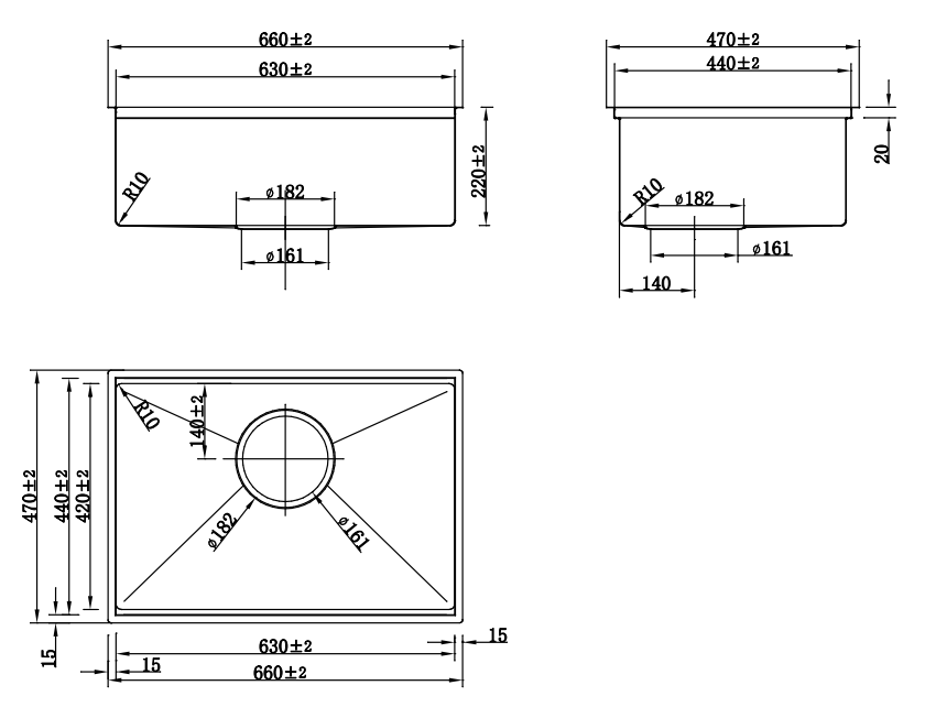 外徑:W660 × D470 × H220 mm 內徑:W630 × D440 mm 厚度:1.2 mm
